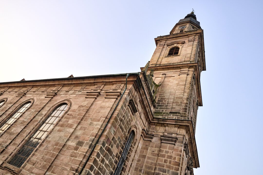 Der erste Kirchenbau an dieser Stelle (von 1288) wurde im Dreißigjährigen Krieg niedergebrannt, der zweite (von 1655) wurde Opfer des großen Stadtbrandes von 1706. Der heutige Barockbau wurde 1709–21 nach Plänen von Wenzel Perner errichtet. Der Fassadenturm wurde 1726 ergänzt. Im Inneren kann man die Stuckdecke von Johann Georg Kannhäuser, den Kanzelaltar von Johann David Räntz und Johann Phillip Göbel sowie einen Taufstein von Elias Räntz bewundern. Außerdem gibt es ein Orgelgehäuse aus der Zeit um 1720 und Holzfiguren aus der Zeit um 1500.