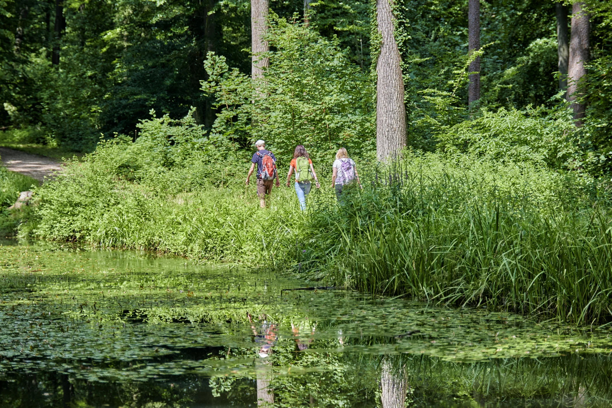 Gelände, Barrierefreiheit: Durchgängig flach; außerorts Feld-, Wiesen- und Waldwege; nahezu durchgängig barrierefrei für Kinderwägen, Tour auch geeignet für Radfahrer*innen