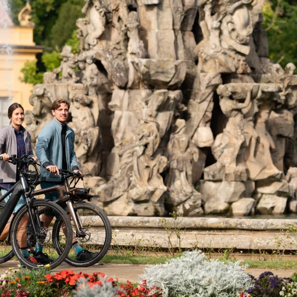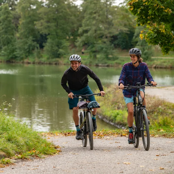 Startpunkt der Tour ist die Tourist-Information. Von dort führt der Weg durch den Bahnhof Richtung Wiesengrund. Vorbei an der Wöhrmühle überquert man die Regnitz und radelt durch den Wiesengrund nach Alterlangen. Die Strecke führt vorbei am „Langen Johann“, der mit seinen 27 Stockwerken das höchste Hochhaus in Erlangen ist, entlang des Main-Donau-Kanals zur Schleuße Erlangen. Im Jahr 2019 wurden dort Spuren einer Bronzezeitsiedlung gefunden. Weiter geht der Weg durch den Wald und vorbei an zahlreichen Weihern nach Dechsendorf. Der Dechsendorfer Weiher ist einer der beliebtesten Badeseen in der Gegend und lädt zu einer kurzen Abkühlung im Sommer ein. Durch den Ortskern führt die Tour wieder in den Wald und vorbei am Kosbacher Altar. Hier grub 1913 der Erlanger Pfarrer Dr. Rudolf Herold einen eisenzeitlichen Grabhügel (ca. 600-400 v.Chr.) aus. Der Begriff des „Kosbacher Altar“ wurde durch seine Entdeckung einer kleinen rechteckigen Steinsetzung mit niedrigen Pfeilern an den Ecken und in der Mitte geprägt. Nun geht es weiter Richtung Süden entlang des Dummetsweihers nach Kosbach. In Kosbach überquert der Weg die Autobahn A3 und führt weiter auf einem breiten Schotterweg durch den Wald nach Untermembach. Entlang von Weihern geht es über Mittelmembach weiter nach Obermembach. Direkt am Ortseingang befindet sich ein schöner Biergarten, der sich perfekt für eine Pause bei fränkischen Speisen und Getränken anbietet. Durch den Wald geht es weiter bergauf bis die Straße nach Beuteldorf gekreuzt wird. Ab hier folgt man Radwegen und Straßen über Haundorf und durch die Erlanger Stadtteile Häusling und Büchenbach zurück nach Erlangen. Schließlich überquert man bei der Tour noch einmal den Main-Donau-Kanal und führt vorbei am Westbad – einem Freibad und Hallenbad - über den Wiesengrund zurück zum Bahnhof und zur Tourist-Information.