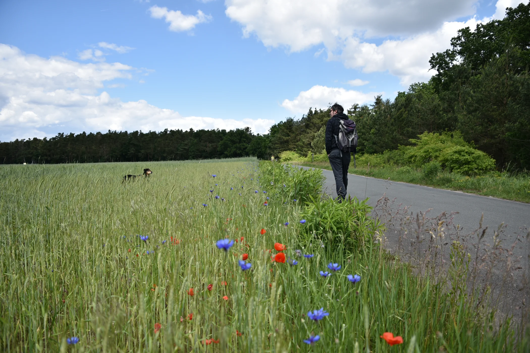 Gelände, Barrierefreiheit: Landwirtschaftliche Wege, schmale Pfade, Waldwege, selten autofreie Straße; fast durchgängig asphaltfrei und eben; nicht barrierefrei, mit Sportkinderwagen möglich